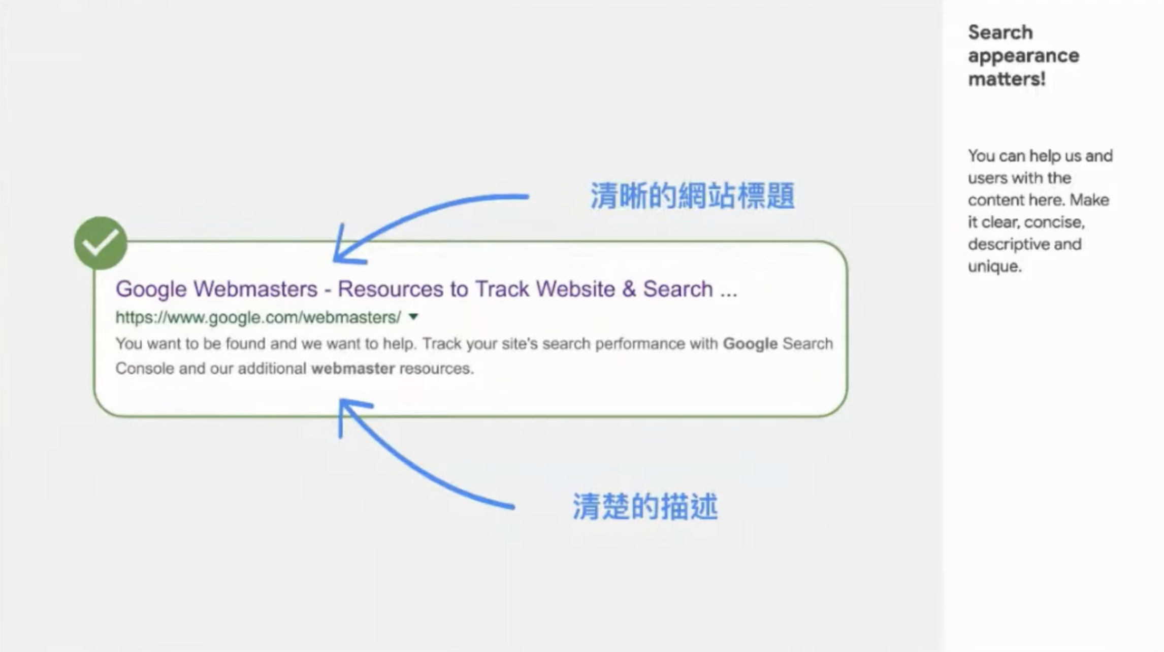 可在你的網站上針對<meta>和<title>這些tag做調整。